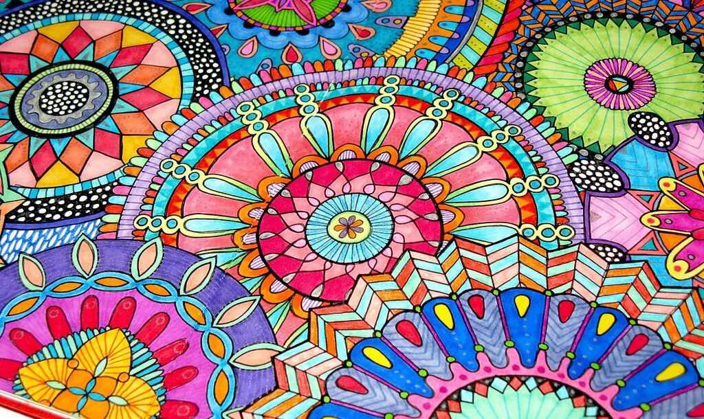 Раскрашивание простых круговых узоров будто бы погружает в транс и дает человеку возможность восполнить свою энергию, направить ее в нужное русло: достижение счастья, успеха и благополучия.