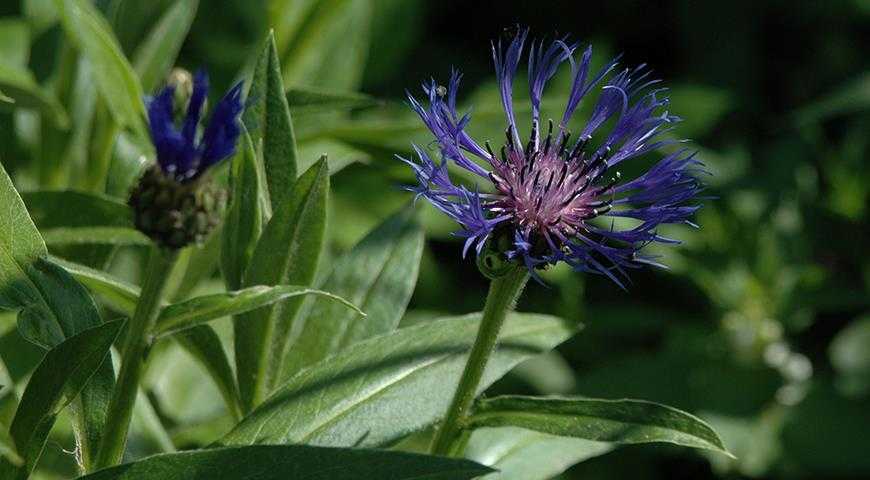 Горный василек — растение высотой около 60 см с синими цветами, диаметром 6 см. Цветет с июня 2-2,5 месяцев.