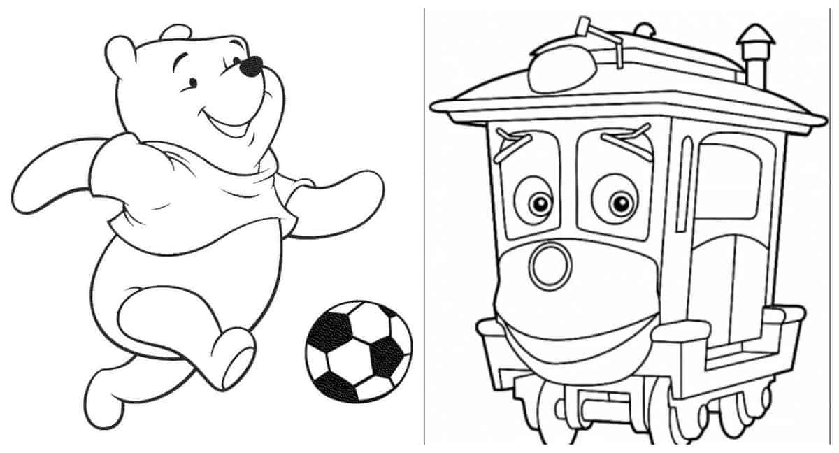 Паровозик Чагинтон и Винни Пух, играющий в футбол.