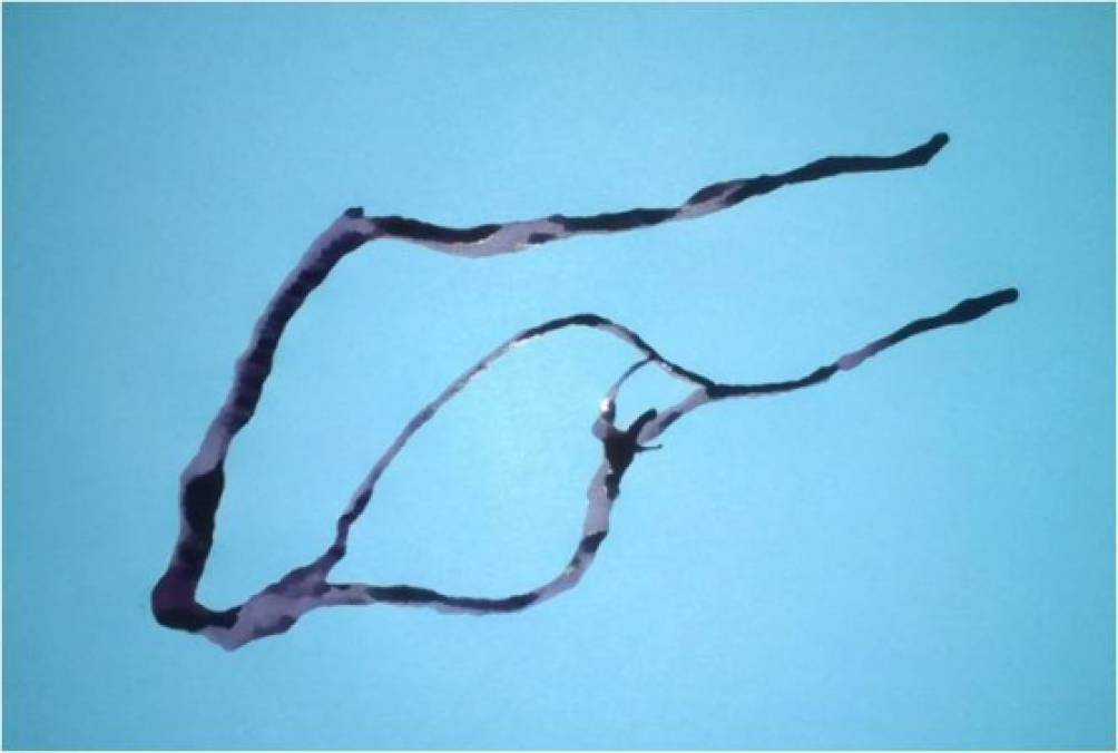 Сначала каплю через трубочку выдуваем вверх до её разделения на несколько частей («дорожек», «веточек»).