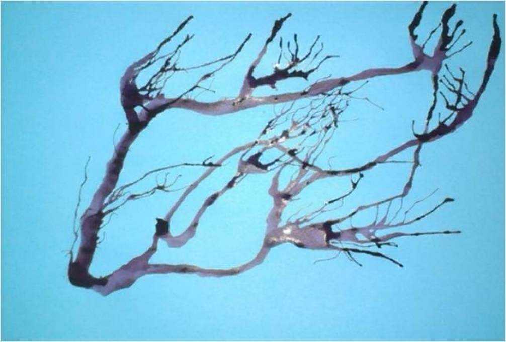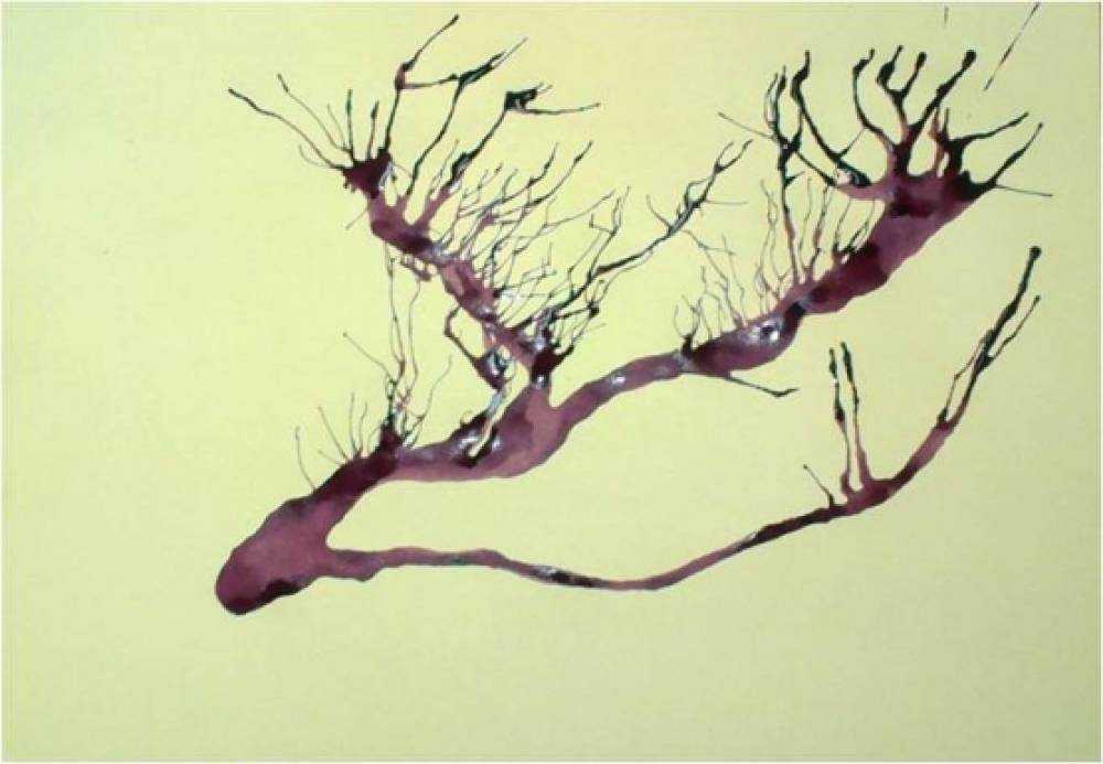 Теперь выдуваем каждую веточку вверх, при этом трубочку необходимо быстрыми движениями двигать вправо-влево – так получатся мелкие веточки.