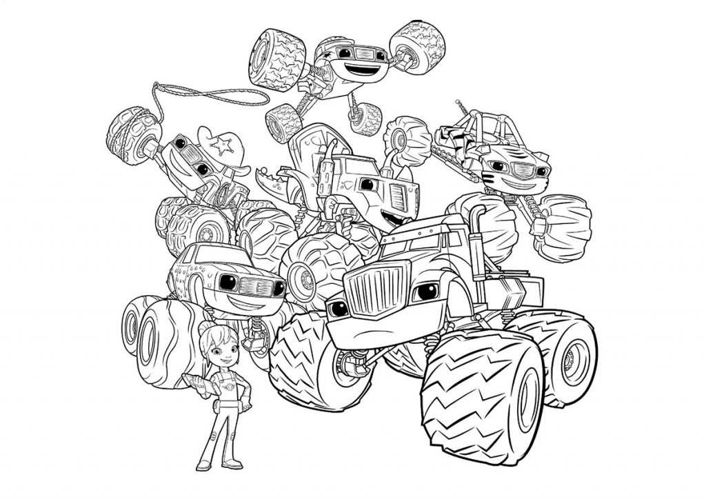 Раскраски с героями города Аксель-Сити. Это машины на больших колесах, каждая из них живет по своим правилам.