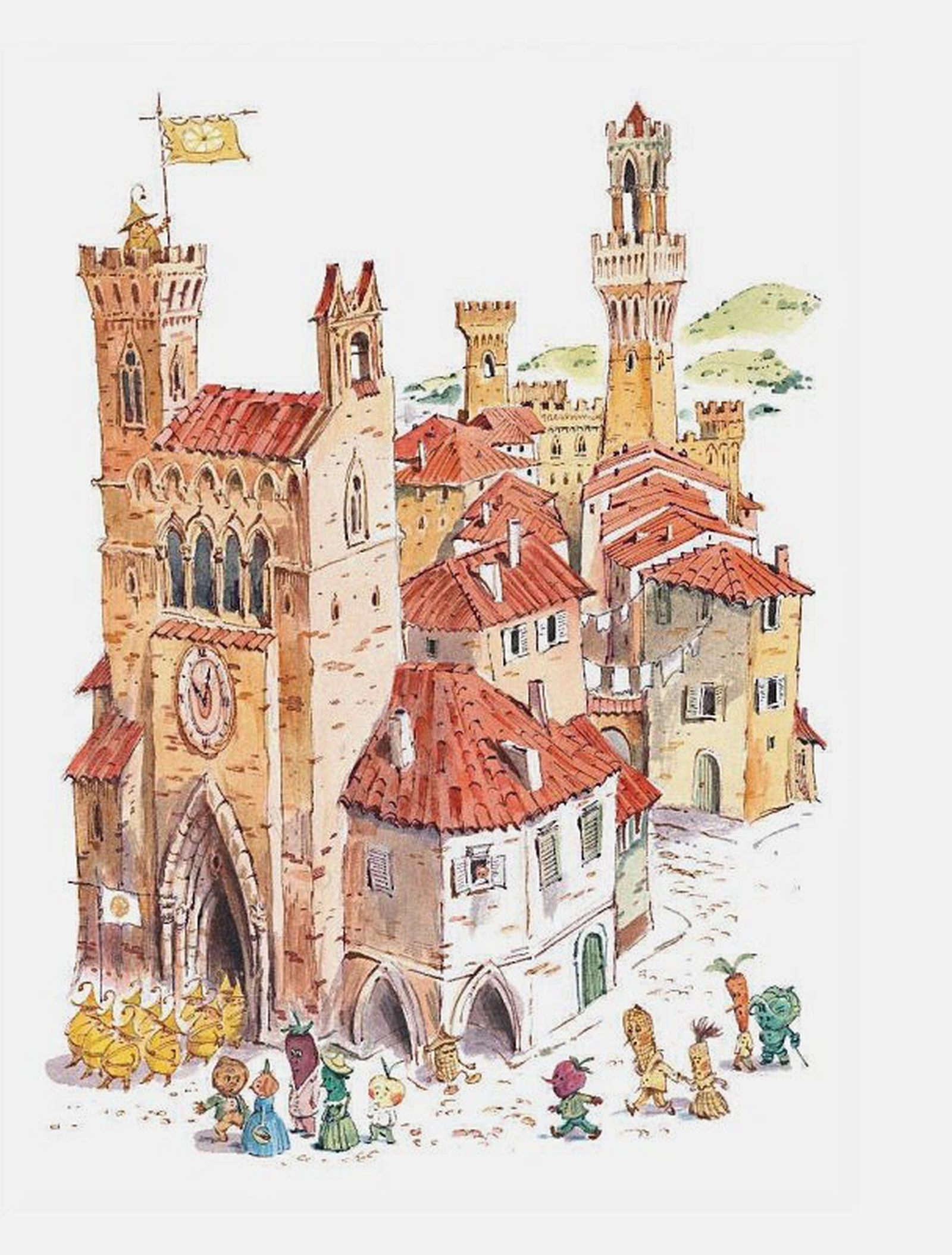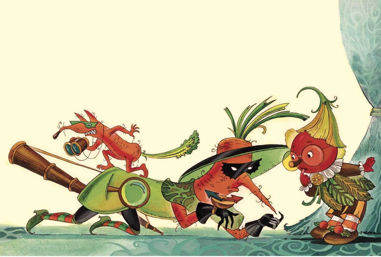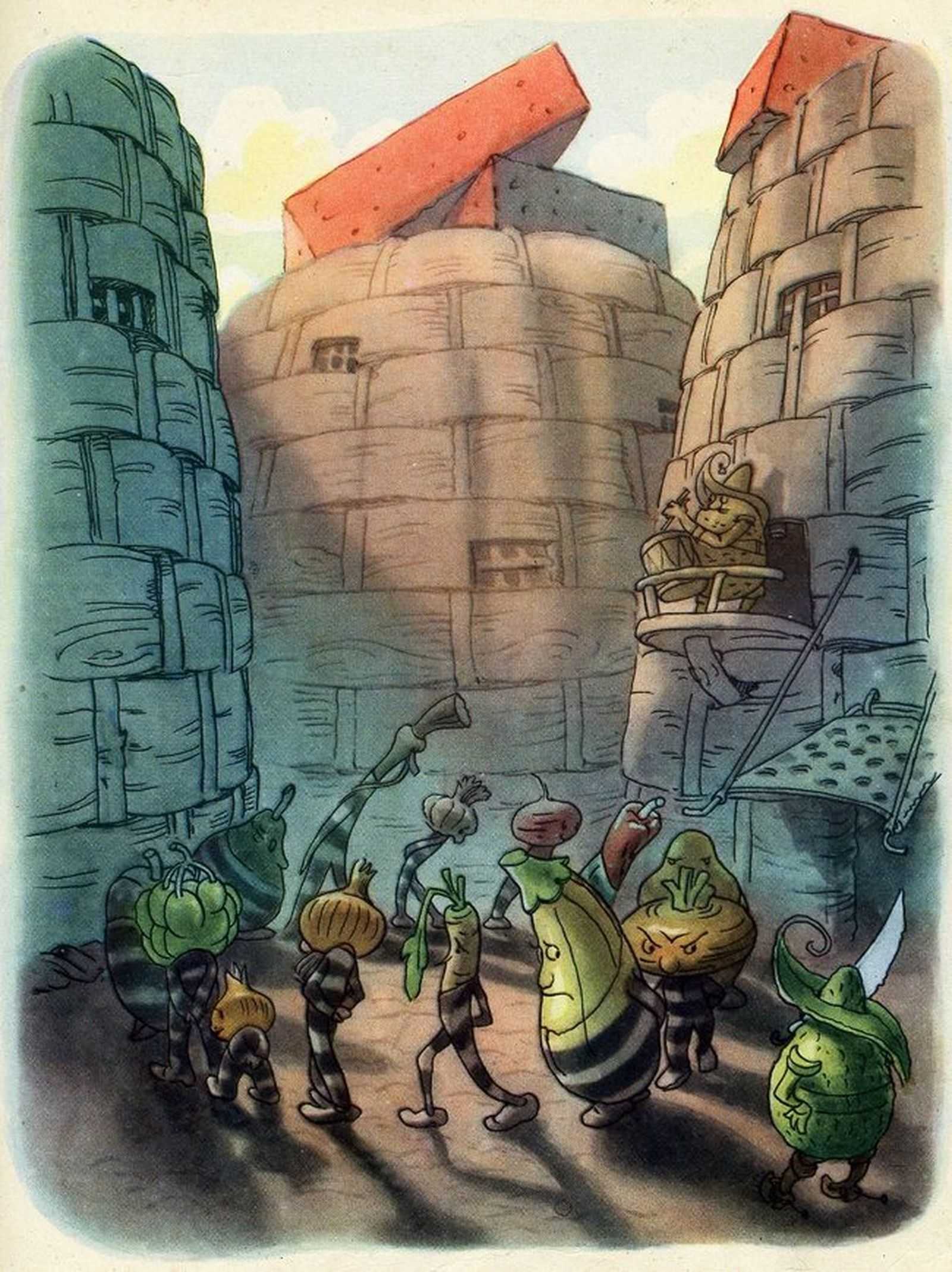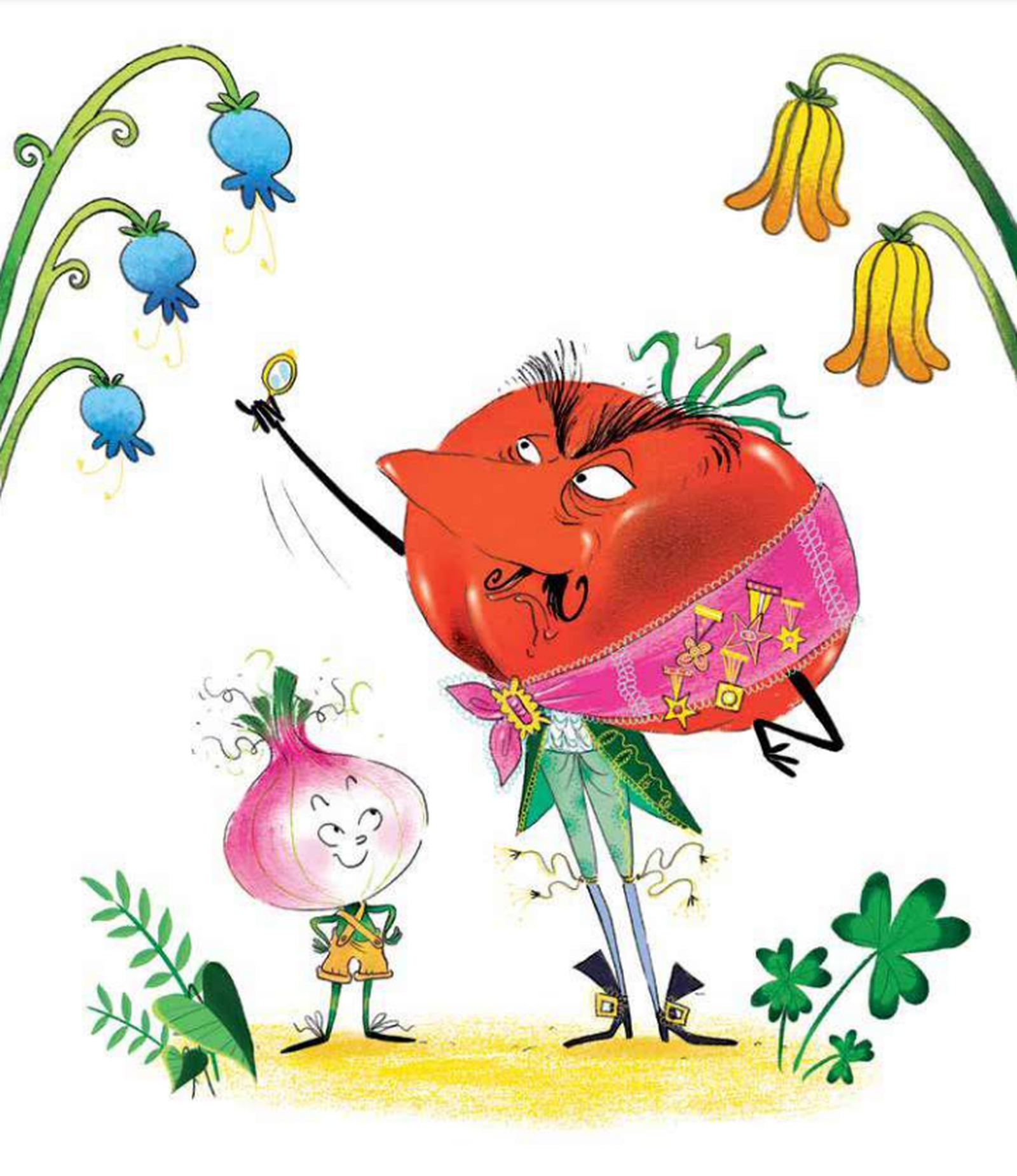 В детстве многие читали сказку о мальчике-луковке, который борется с несправедливостью богатых синьоров-фруктов. Отца Чиполлино — старого Чиполлоне — сажают в тюрьму за то, что он нечаянно наступил на мозоль принцу Лимону. Чиполлино обещает освободить отца, уходит из дома и путешествует по сказочной стране, где у власти находятся принц Лимон, графини Вишни, синьор Помидор, барон Апельсин, герцог Мандарин — символы жестокости, бессердечия и жадности. Овощи живут в нужде и обязаны платить налоги даже за воздух и дождь. Отважный герой вступает в конфликт с синьором Помидором и вместе с друзьями свергает власть тиранов. В конце сказки устанавливаются равенство и овощное братство.