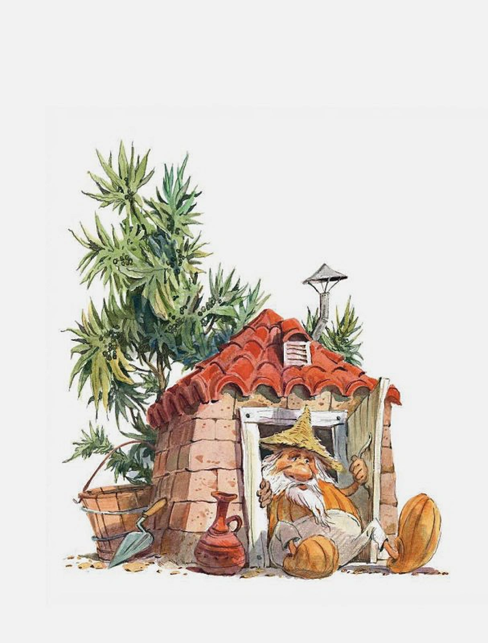 «Теперь-то я могу вам сказать, где домик кума Тыквы, — горько улыбнулся синьор Горошек. — Ведь завтра мы оба умрем и унесем нашу тайну в могилу», 1999