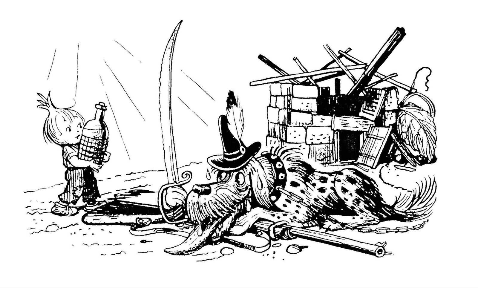 «Чиполлино от души жалел бедного пса, который томился от жажды, но ему было очень не по душе то ремесло, которым занимался Мастино», 1955