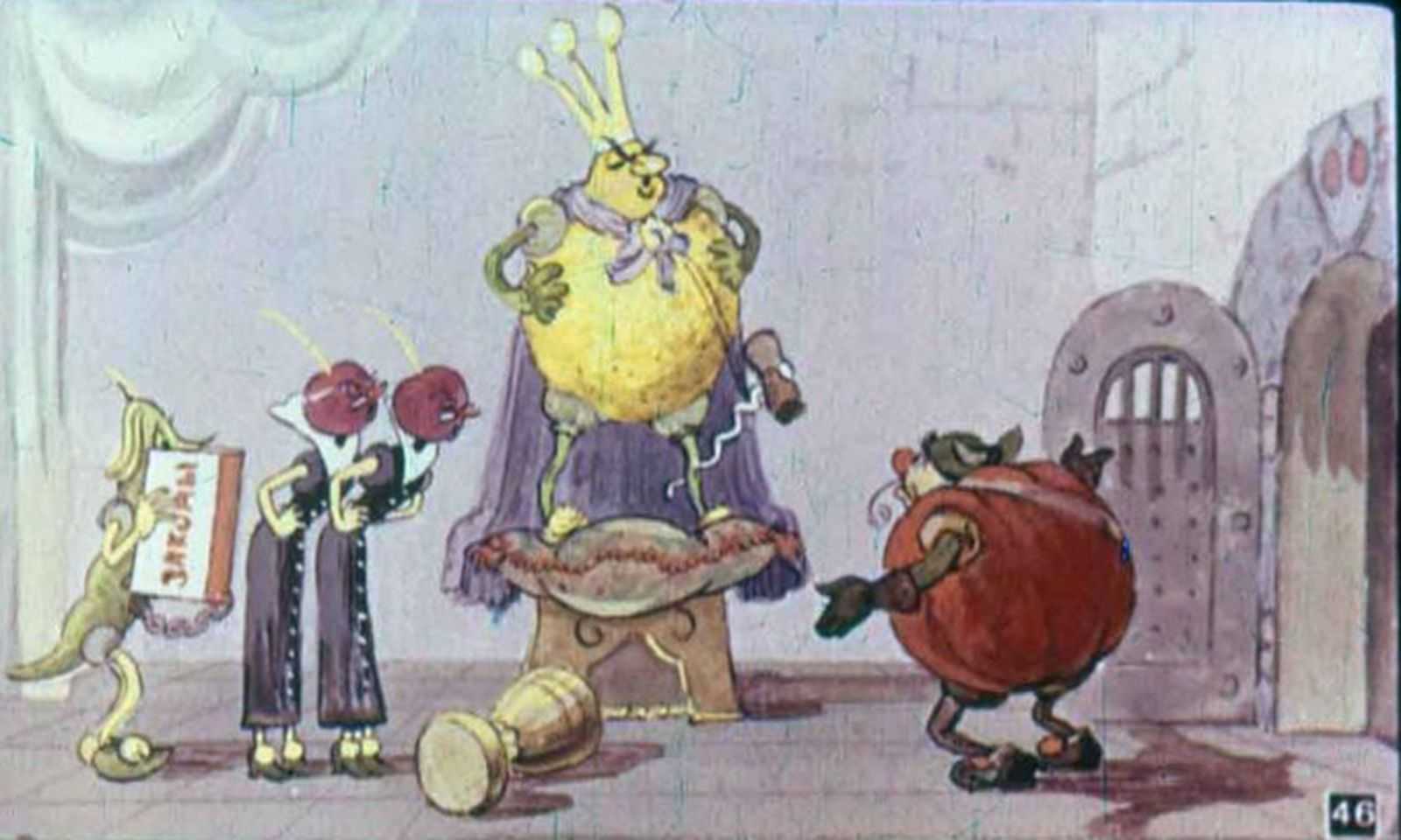 «Принц Лимон, — продолжал синьор Помидор, — очень разгневался на то, что ему так и не удалось найти виноватых. И знаете, что он в конце концов придумал? В присутствии графинь, гостей и слуг он обвинил меня в том, что я, кавалер Помидор, — главный зачинщик заговора», 1955