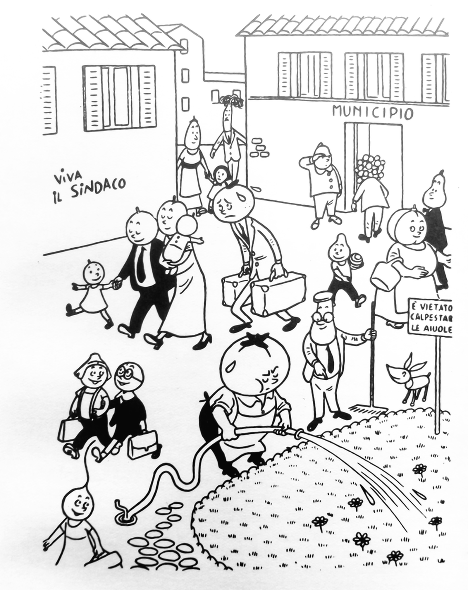 «Вам не нравится, что синьора Помидора оставили на свободе? Он отсидел, сколько ему было положено, а потом его из тюрьмы выпустили. Теперь Помидор сажает капусту и подстригает траву», 1951