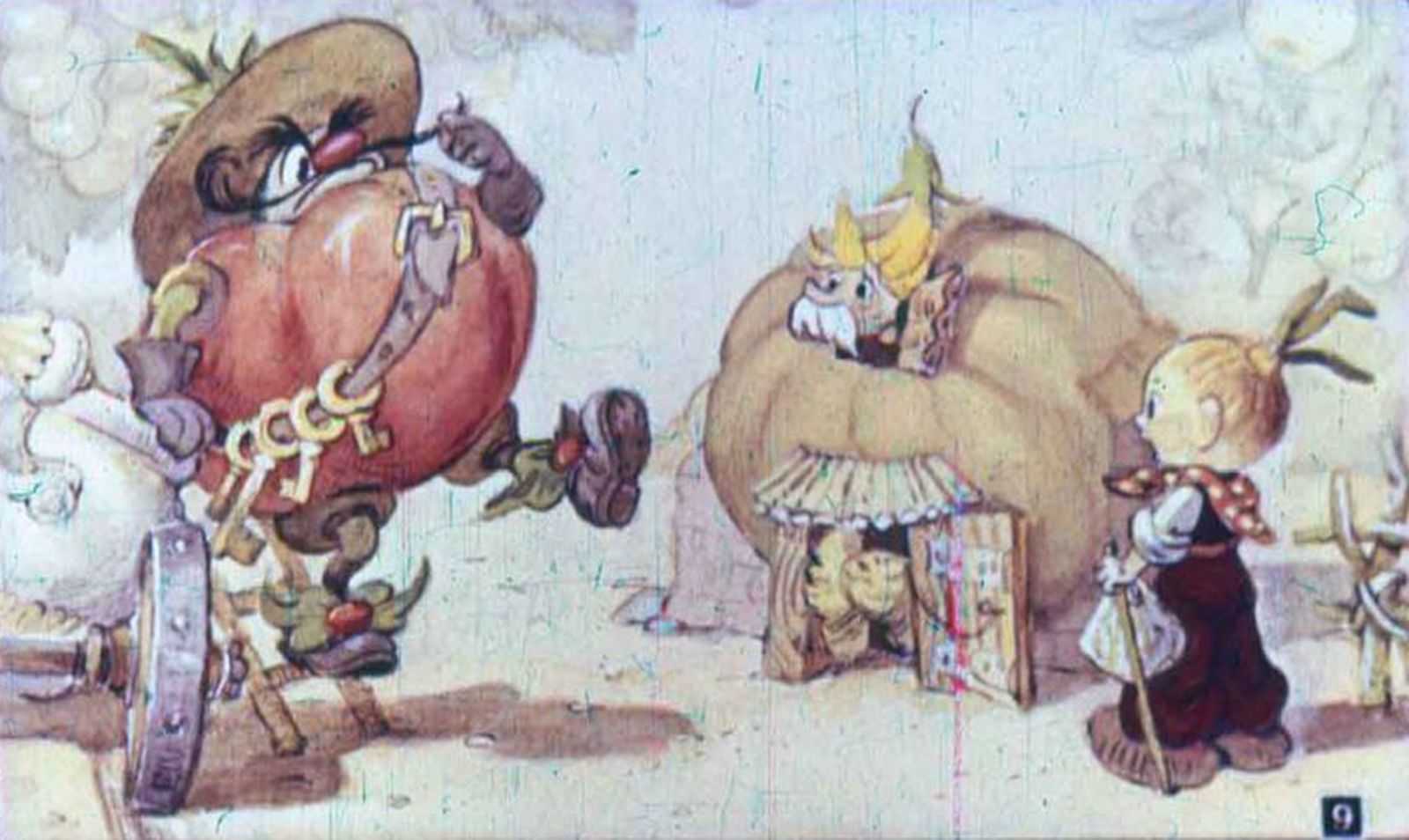 Чиполлино помогает спрятать домик кума Тыквы от синьора Помидора, 1951