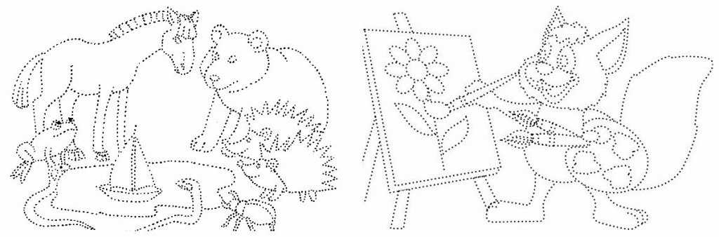 Обучающая раскраска по точкам. Суть проста — нужно провести ровную линию от одной точки к другой, которая ближе всего. Если делать это аккуратно и стараясь, то получится красивая картинка. Малыш ее нарисует практически самостоятельно, просто следуя маленьким «подсказкам». Это развивает воображение, художественное восприятие. Малыш учится концентрироваться на одной задаче. Если выработать усидчивость уже сейчас, то крохе будет проще в первом классе. Раскраска по маленьким точкам поможет развить навыки рисования. Сам процесс раскрашивания прививает чувство вкуса. Чадо лучше разбирается в сочетании цветов.