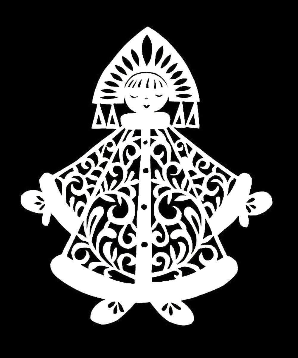 Не менее востребованы вытынанки со Снегурочкой для украшения дома к Новому Году. Стоит отметить, что обычные вырезки из бумаги отличают от вытынанок тем, что вытынанки все-таки изготавливаются в более ажурном виде. Именно вытынанки ценятся как украшение, сделанное своими руками во всех странах и пользуются спросом.