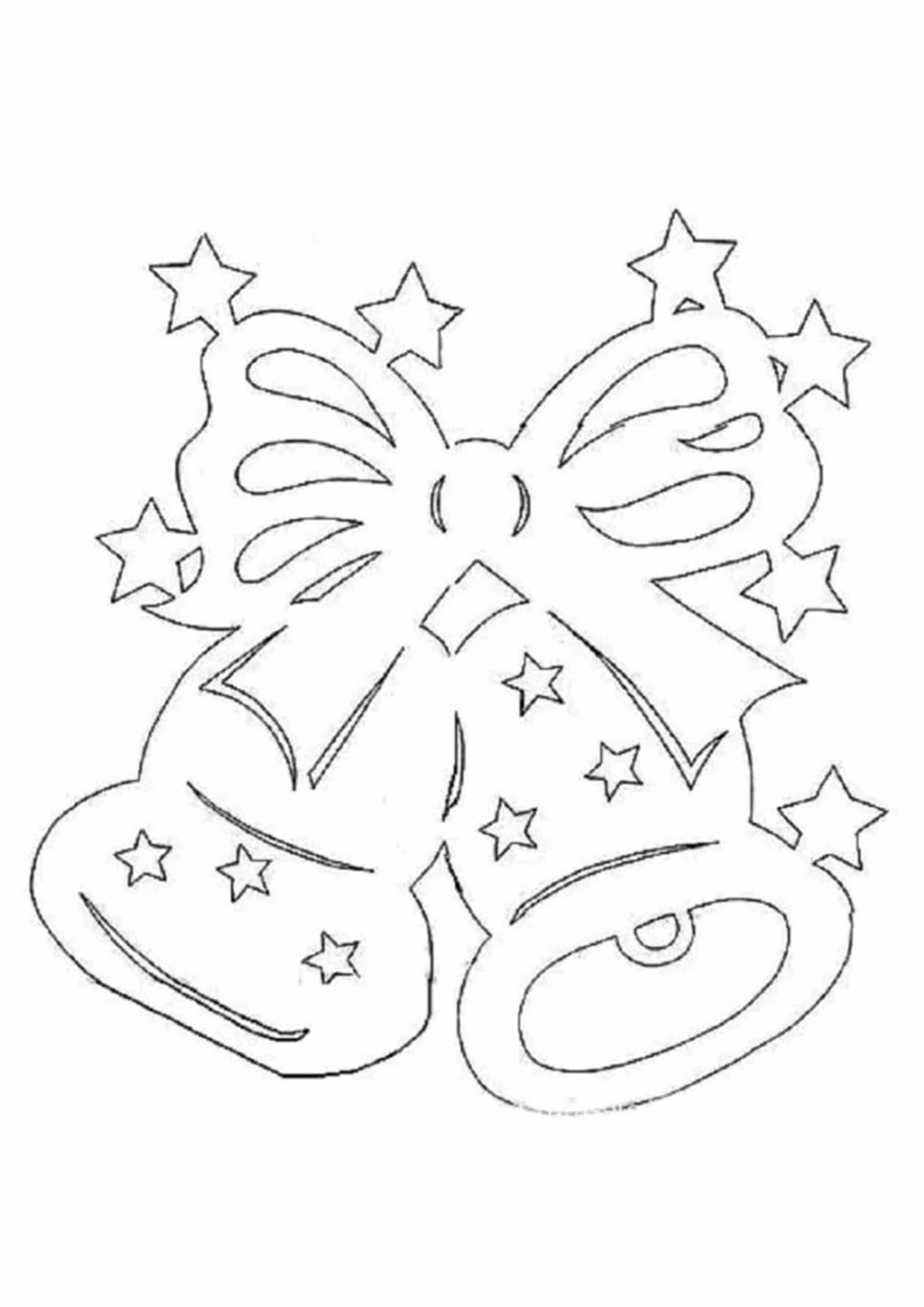 Колокольчики-еще один атрибут Нового Года, который используется для украшений. Изготовить самостоятельно такую фигуру довольно-таки легко и просто. Достаточно воспользоваться шаблоном, на котором может быть изображен не только колокольчик, но и бант.