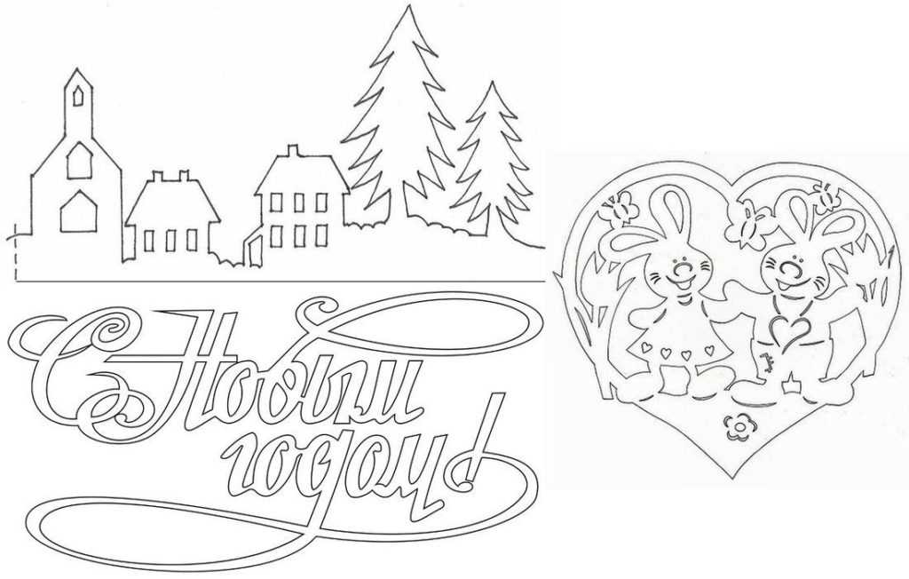 Шаблон нужно приложить к тонкой глянцевой бумаге и обвести контур карандашом, а также все внутренние части. Начинается вырезание с того, что вырезаются внутренние части изображения при помощи ножа, а контур вырезается в заключении при помощи маленьких маникюрных ножниц, чтобы не нарушить границы будущей фигурки.