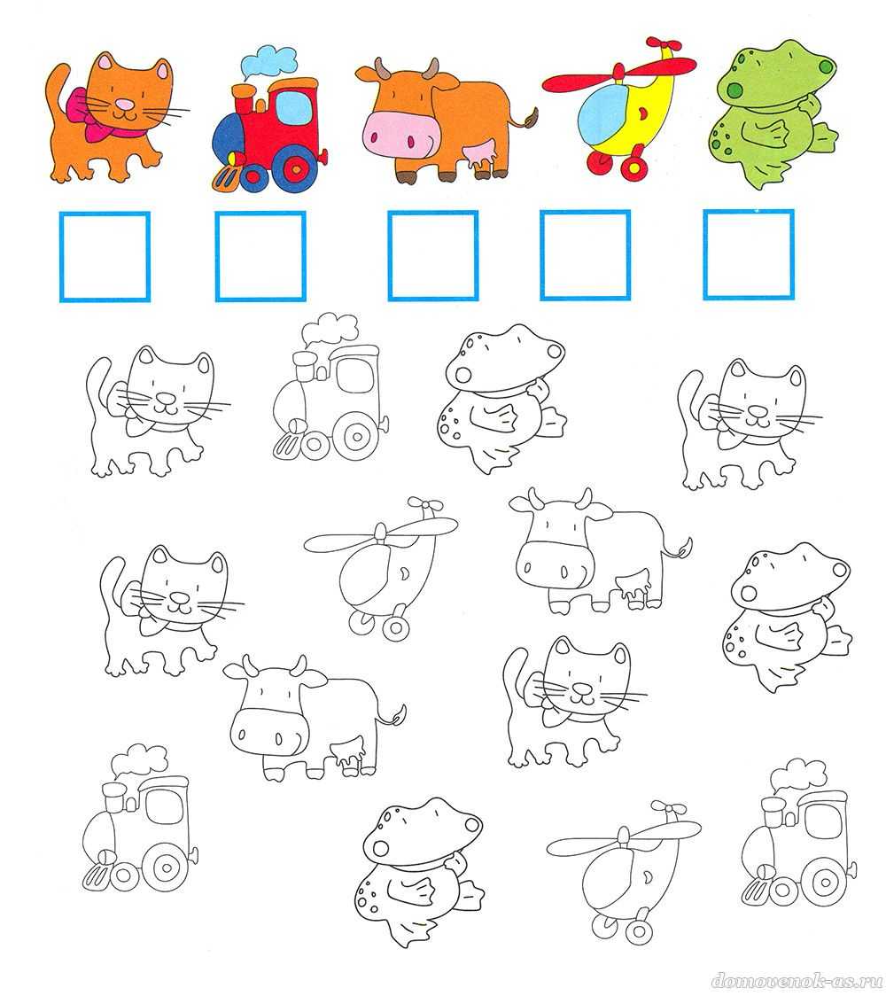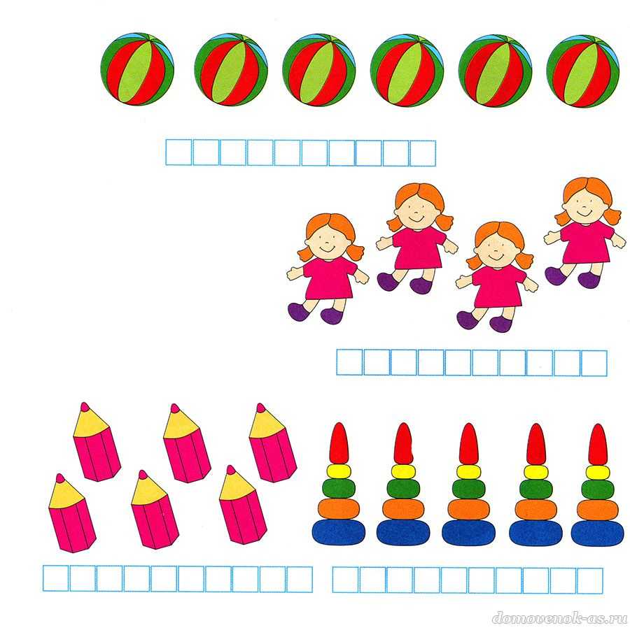 №3. Сосчитай предметы в каждой группе и раскрась столько же клеточек.