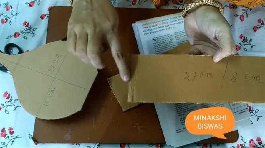 Из картона вырежьте основу. Дно корзинки 27 на 8 см и боковины 16 на 27 см в самой широкой части. Сверху боковин проделайте отверстия диаметром 1-1,5 см.