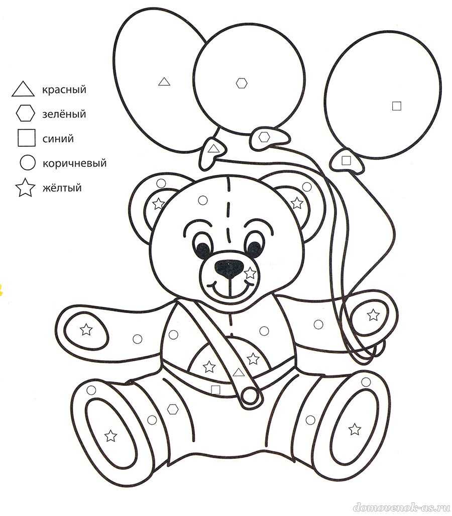 №11. Раскрась медвежонка по значкам-подсказкам.