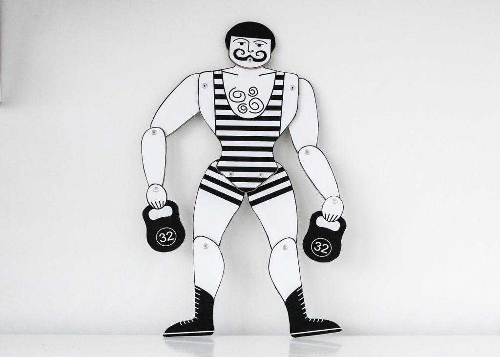 Забавный силач в стиле ретро. Напоминает старые советские мультфильмы, не правда ли?