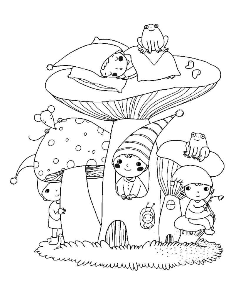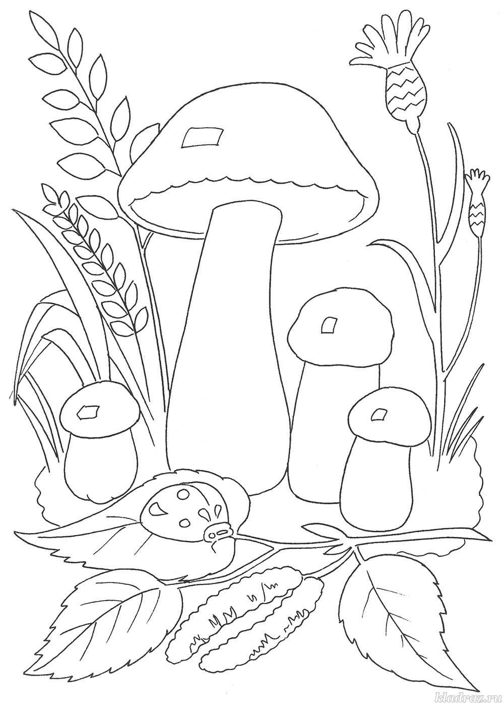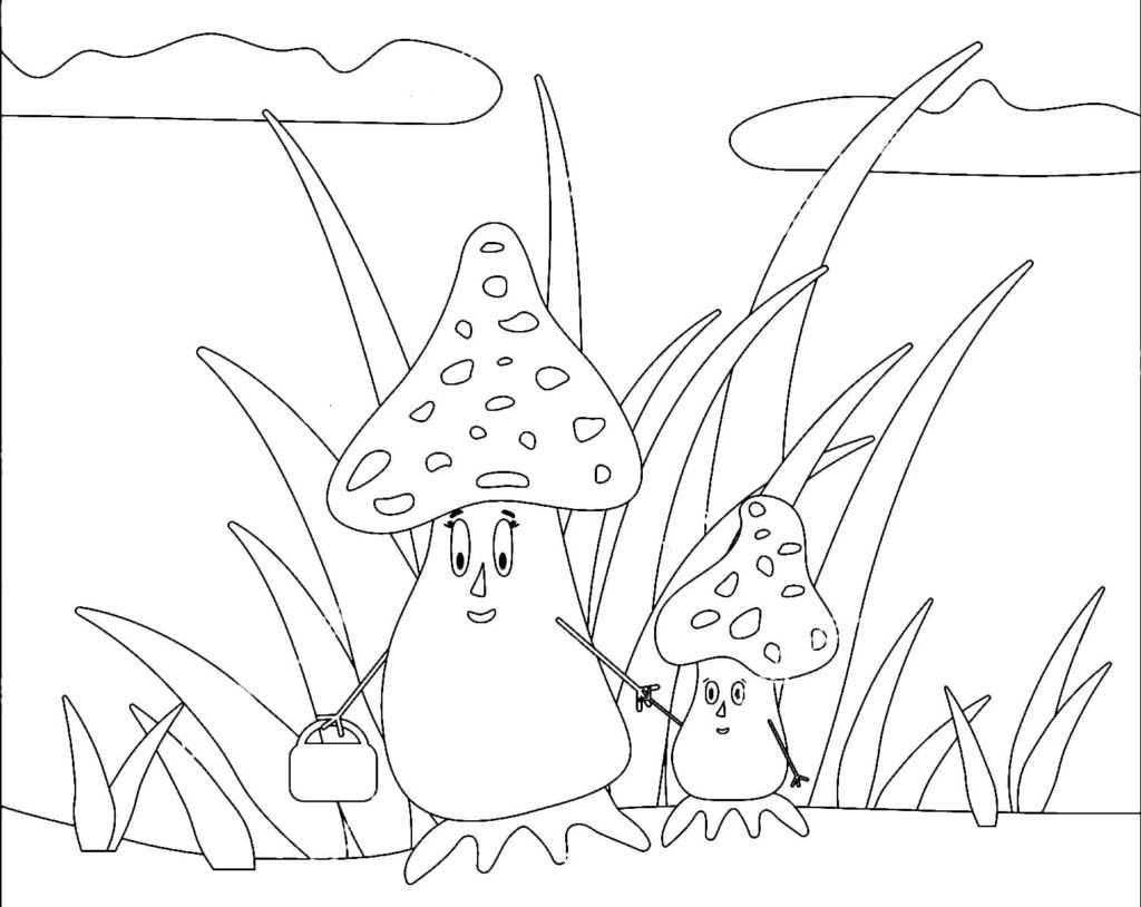 Детские раскраски на тему «Грибы» для детей старшего дошкольного возраста.