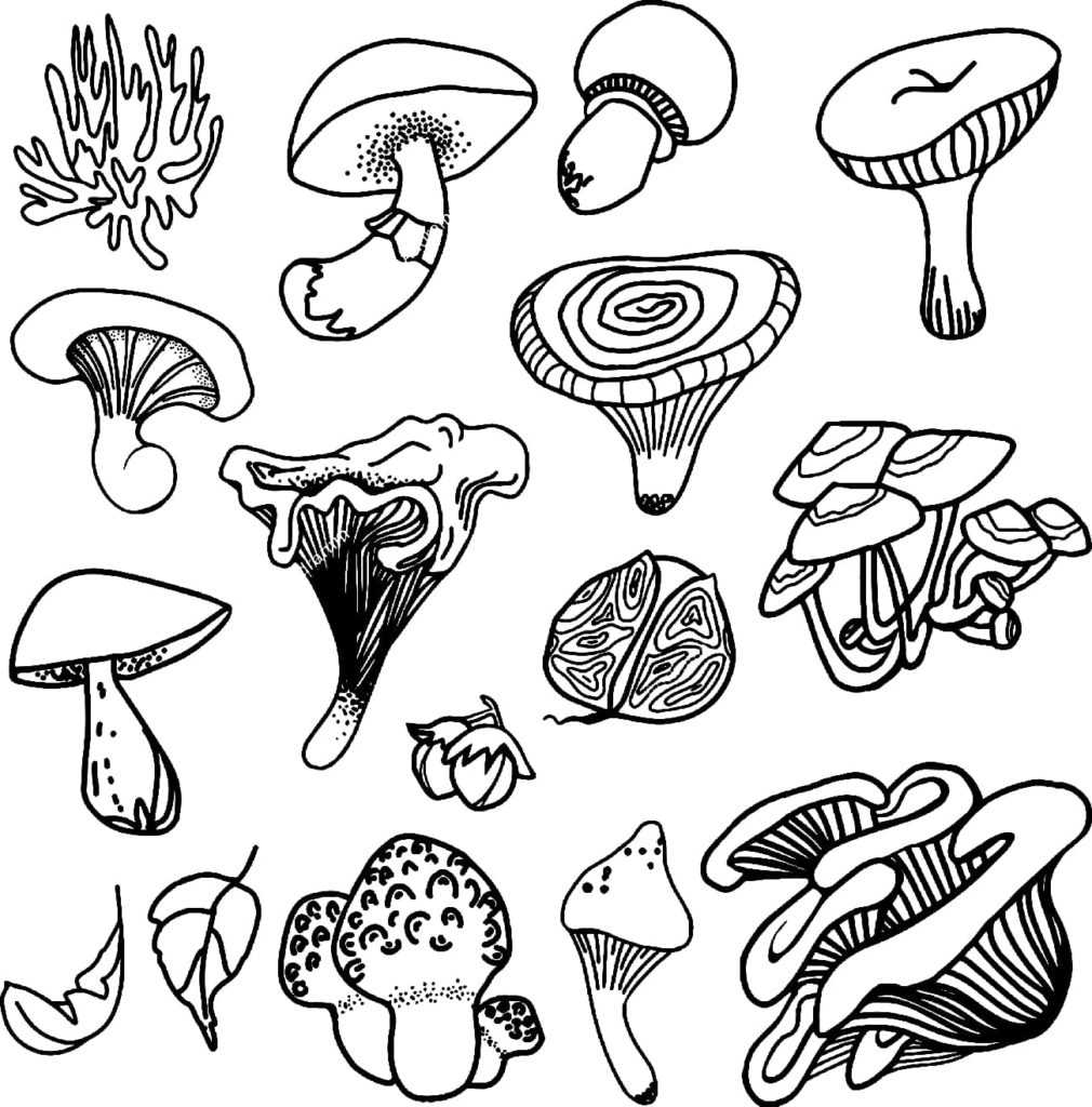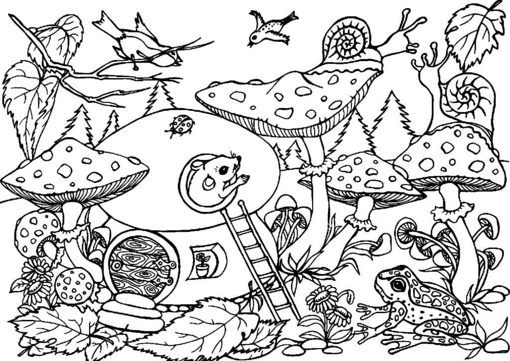На этой странице вы найдете как легкие раскраски с грибами для малышей, так и картинки посложнее для подростков. Большая коллекция раскрасок для печати в формате А4 на нашем сайте.
