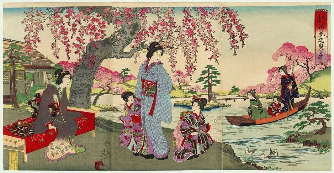 Позднее на берегах рек, где росла сакура, стали появляться мастерские ремесленников, и простым людям тоже стала доступна красота цветения японской вишни. Парки с цветущей сакурой стали местами проведения чайных церемоний и популярными местами, где любили гулять поэты и художники. Многие живописцы отразили цветущую сакуру в своих гравюрах и картинах, а поэты – в трехстрочных стихах хайку.