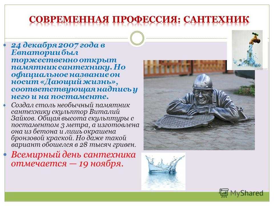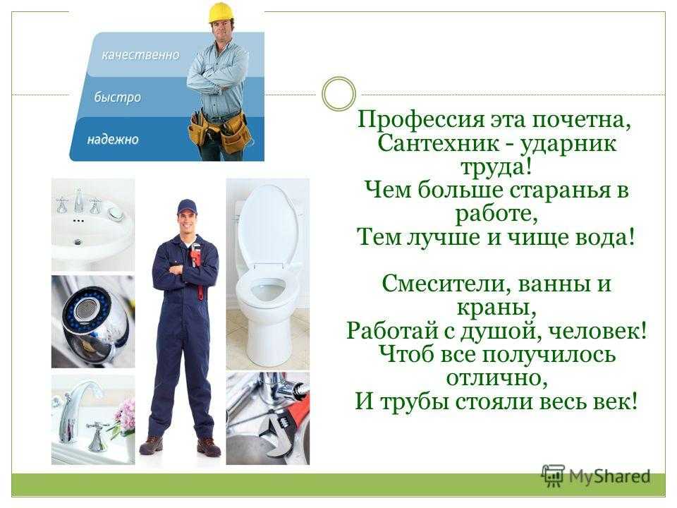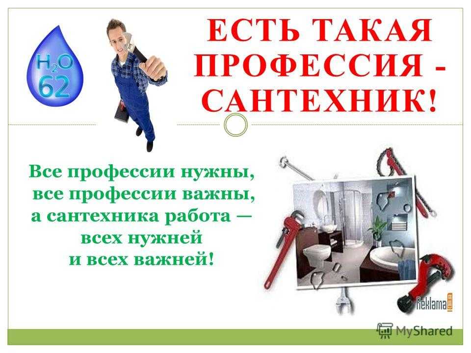 Презентация на тему: » ЕСТЬ ТАКАЯ ПРОФЕССИЯ — САНТЕХНИК! Все профессии нужны, все профессии важны, а сантехника работа всех нужней и всех важней!» — Транскрипт: