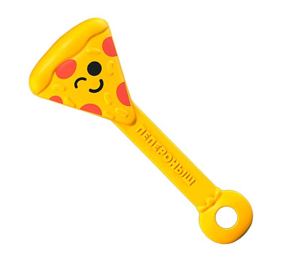 Симпатичная жёлтая пицца с колбасой подмигивает и улыбается. Время сделать перерыв на обед!