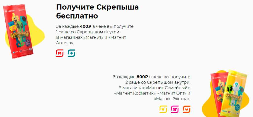 - Попросить кассира при выдаче чека предоставить игрушку из коллекции на magnit.ru/skrepishi.