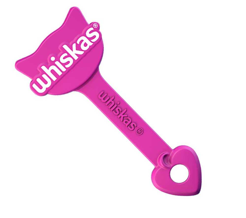 Милая розовая кошечка с сердечком ласково мурлычет и напоминает о любимом корме каждой пушистой любимицы.