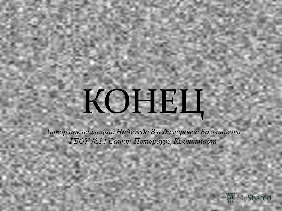 КОНЕЦ Автор презентации: Надежда Владимировна Большакова ГБОУ 14 Санкт-Петербург, Кронштадт