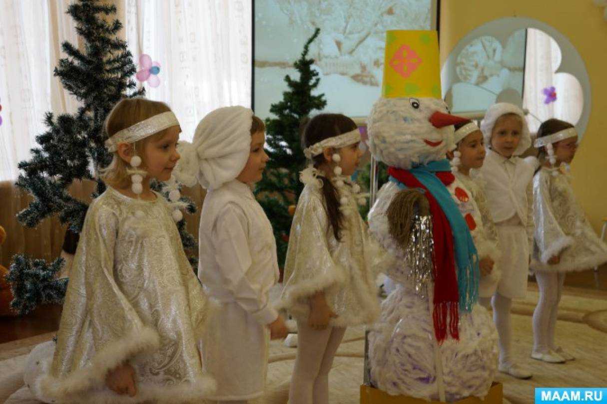 Звучит фонограмма песни «Снеговик» (сл. В. Коростылева, муз. М. Минкова). Мальчики-Снеговики «оживают» и танцуют свой танец. Дети радуются снеговикам, хлопают в ладоши, улыбаются, подтанцовывают. После танца дети подходят к Снежной бабе и мальчикам — снеговикам.