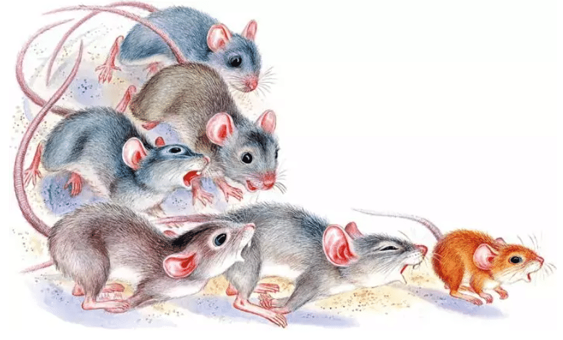 Целое войско их накинулось на мышонка, и ему ничего не оставалось, как броситься в бегство.