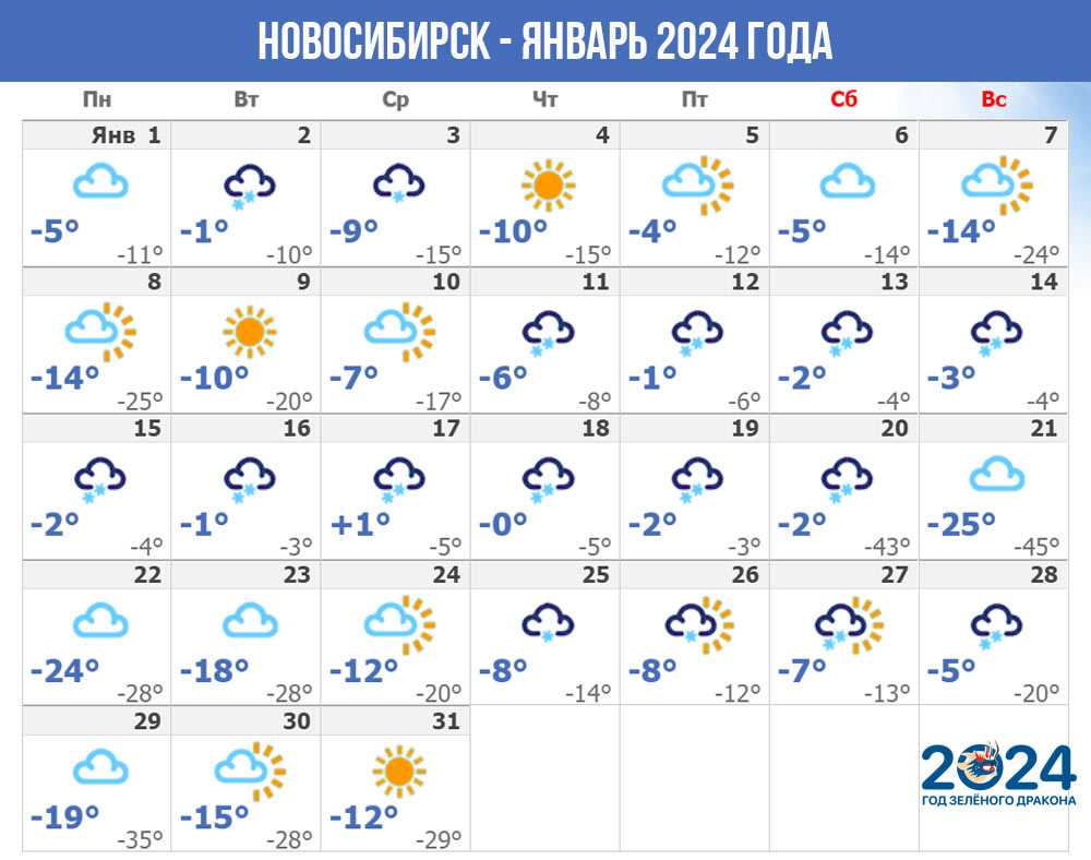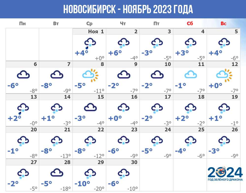 Предлагаем рассмотреть, какой будет грядущая зима 2023-2024 в Западной Сибири на примере долгосрочного прогноза, составленного метеорологами для Новосибирска – одного из самых больших городов региона.